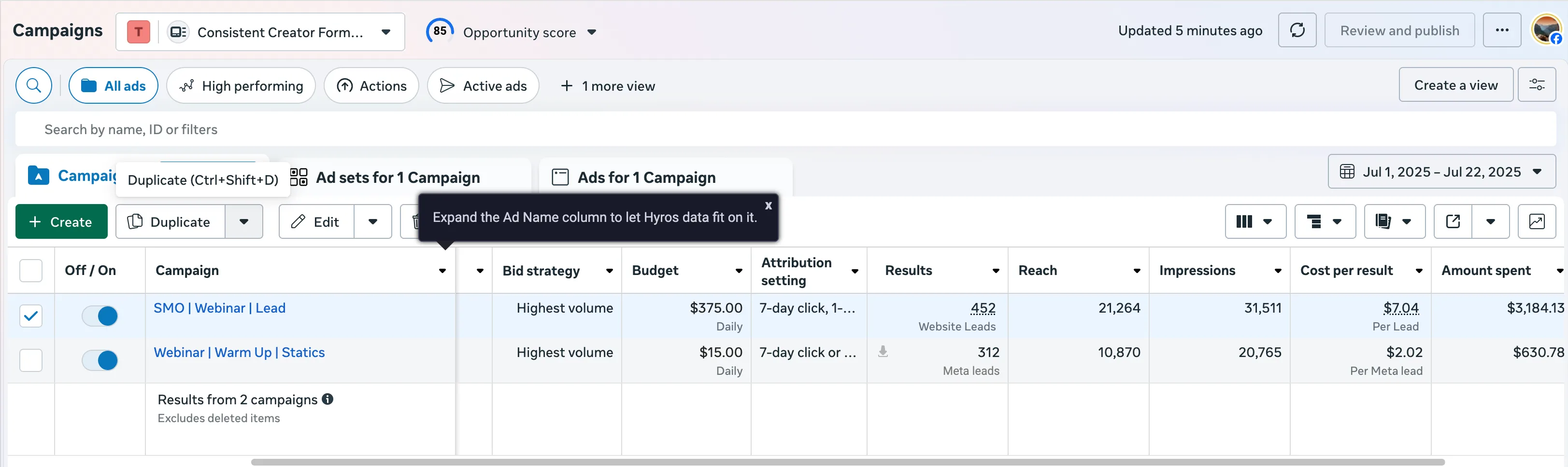 After launching with new messaging, a new funnel structure, and new campaign structure, he got a quick $5k Paid-In-Full deal off a couple hundred in spend & is scaling steadily.