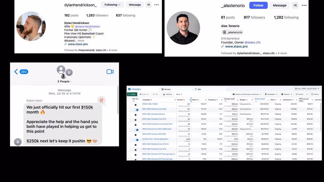 We helped STAXX scale to $150k/mo in revenue through ads (and growing quickly), booking them over 325 qualified calls at an average of $187 a call.